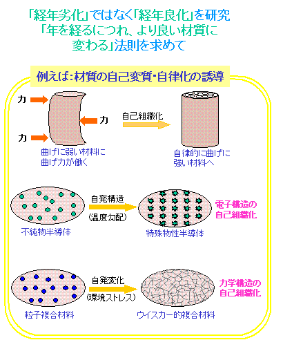 複雑現象の基本となる数理的要素は、系が様々な時間・空間スケールを持ち、それらが階層的に構成されたことにあり、従来の物理学の枠組み、すなわち要素還元論的な観点からの記述が不可能であることにある。この部門の主力は、そのような現象を導く数理的構造を明らかにすることである。本部門の研究者は、これらの数理を対象として、これまでガラス化理論の構築や応答関数と確率論的表現の関係を厳密に証明し、新しく有効媒質近似法の提案などの成果を上げている。また実験的には高分子ゲルがガラスに類似した特徴をもつことを明らかにした。ここでは、これらをさらに進展させ、従来にはない空間・時間スケールにおけるダイナミックスを解析する理論的枠組みを構築し、それをベースに計算機実験を行い、様々な現象の理解を進める。これらは工業的応用も重要で、その法則が分かり基礎論が理解されることによって、応用範囲が格段に広がることが期待される(図2)。